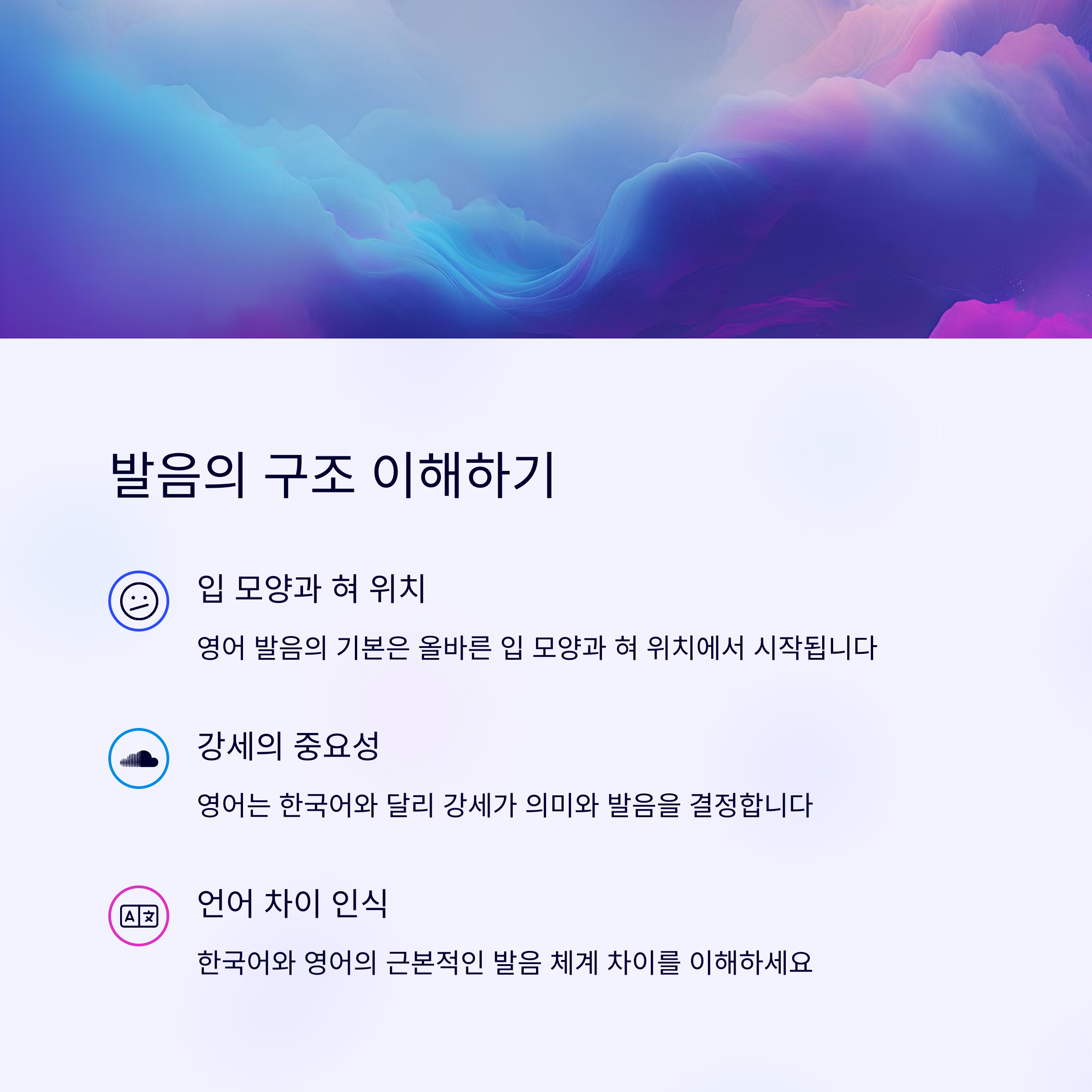 | 발음 교정 핵심 | 입모양, 소리 구조 이해가 가장 중요합니다 |