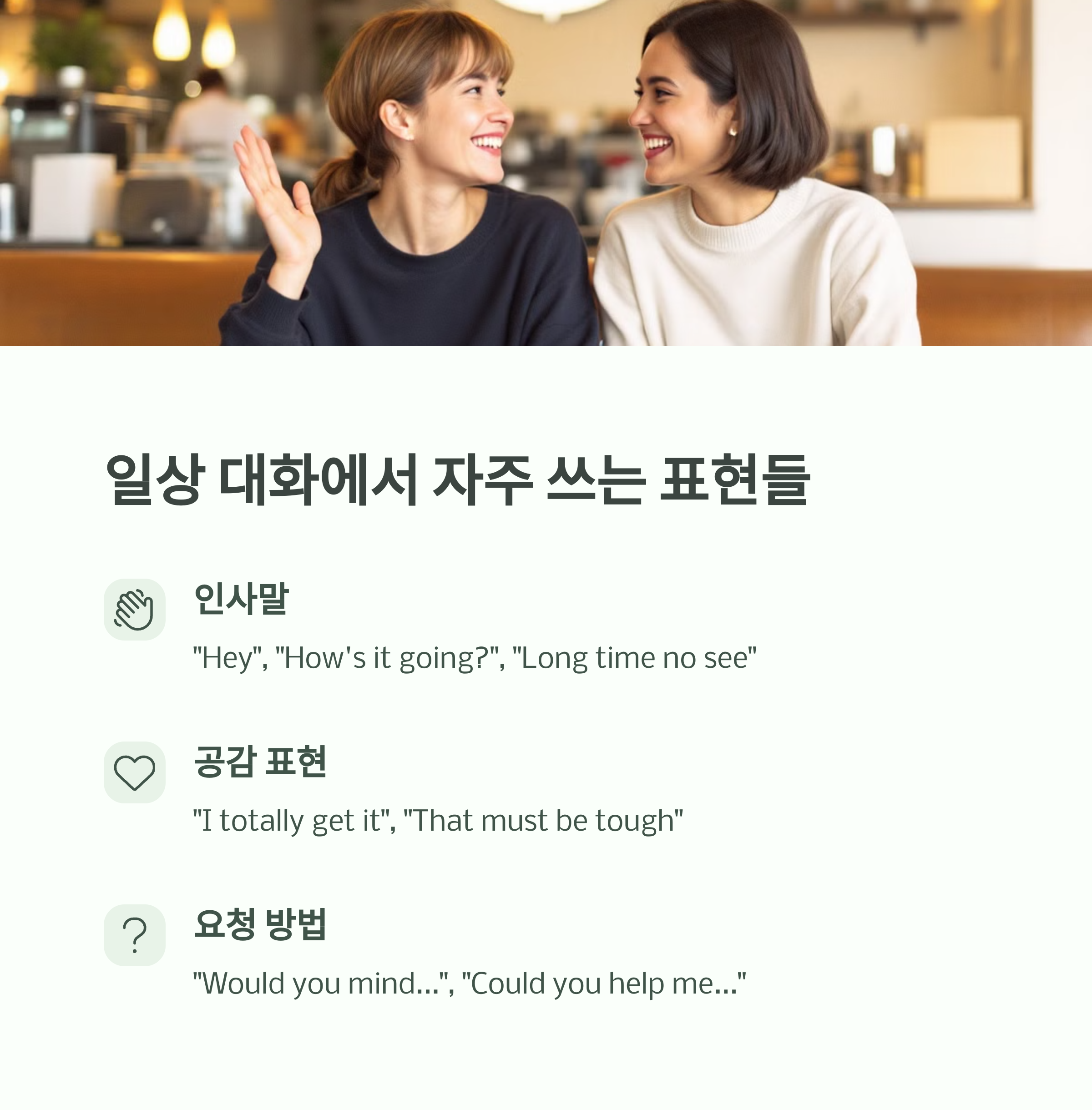 이 포스팅 하나면, 여러분의 영어 회화 수준이 한층 자연스럽고 유창해질 수 있어요. 꼭 다 외우지 않더라도, 필요한 순간마다 찾아볼 수 있게 정리해드릴 테니 편하게 읽어주세요.