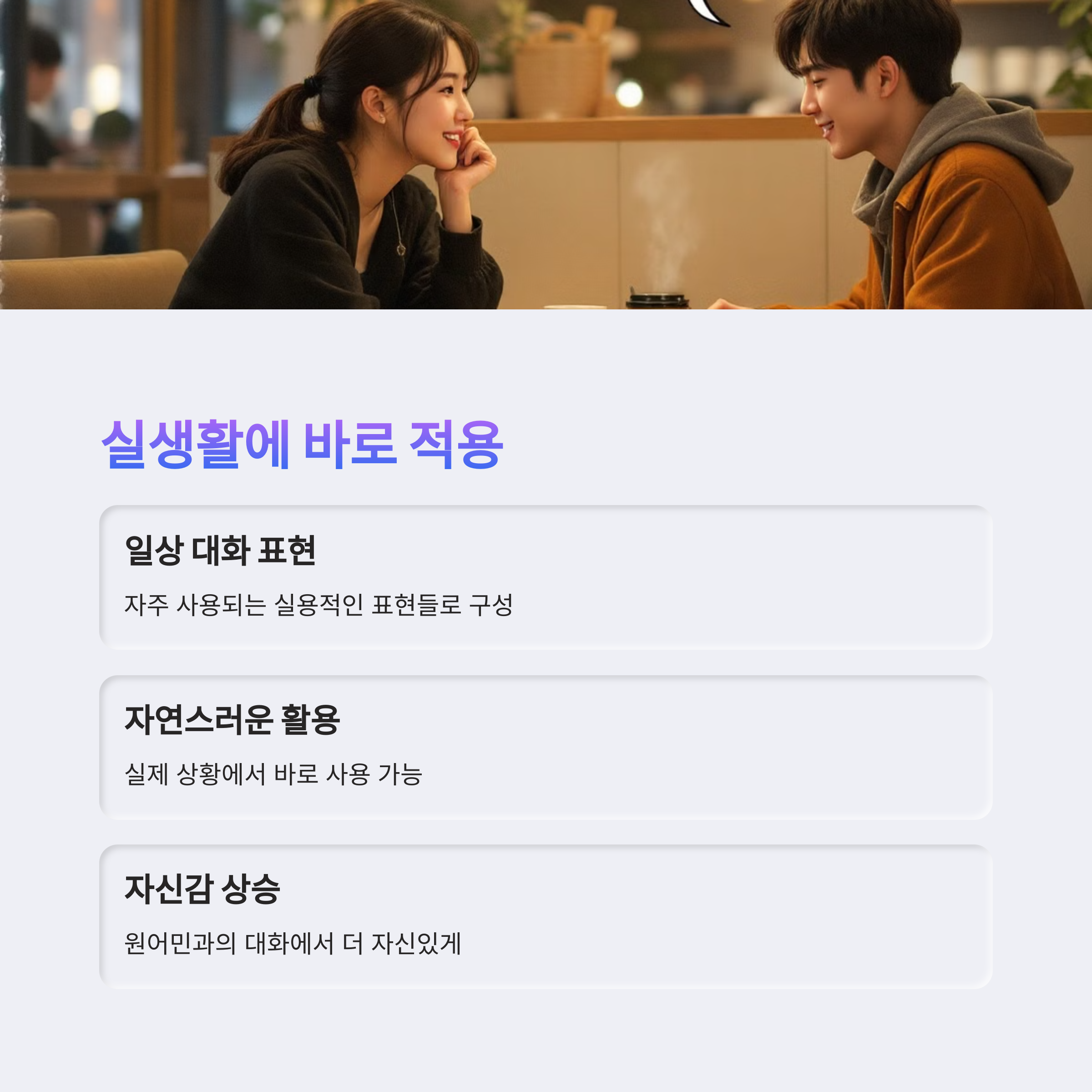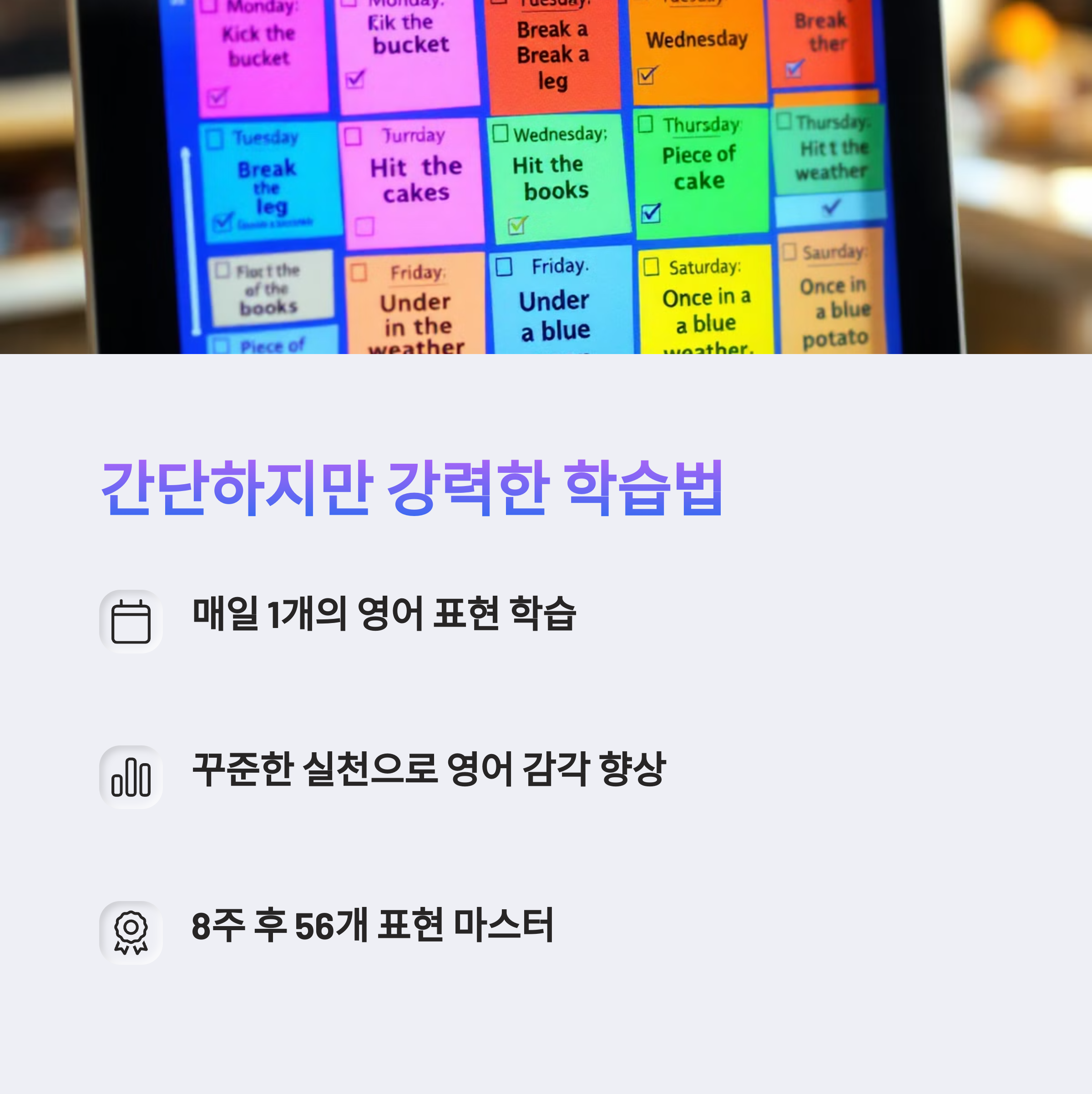 하루 1표현은 학습 부담을 줄이면서도 집중력을 높여줍니다. 꾸준히 실천하면 실생활 표현력을 자연스럽게 향상시킬 수 있습니다.