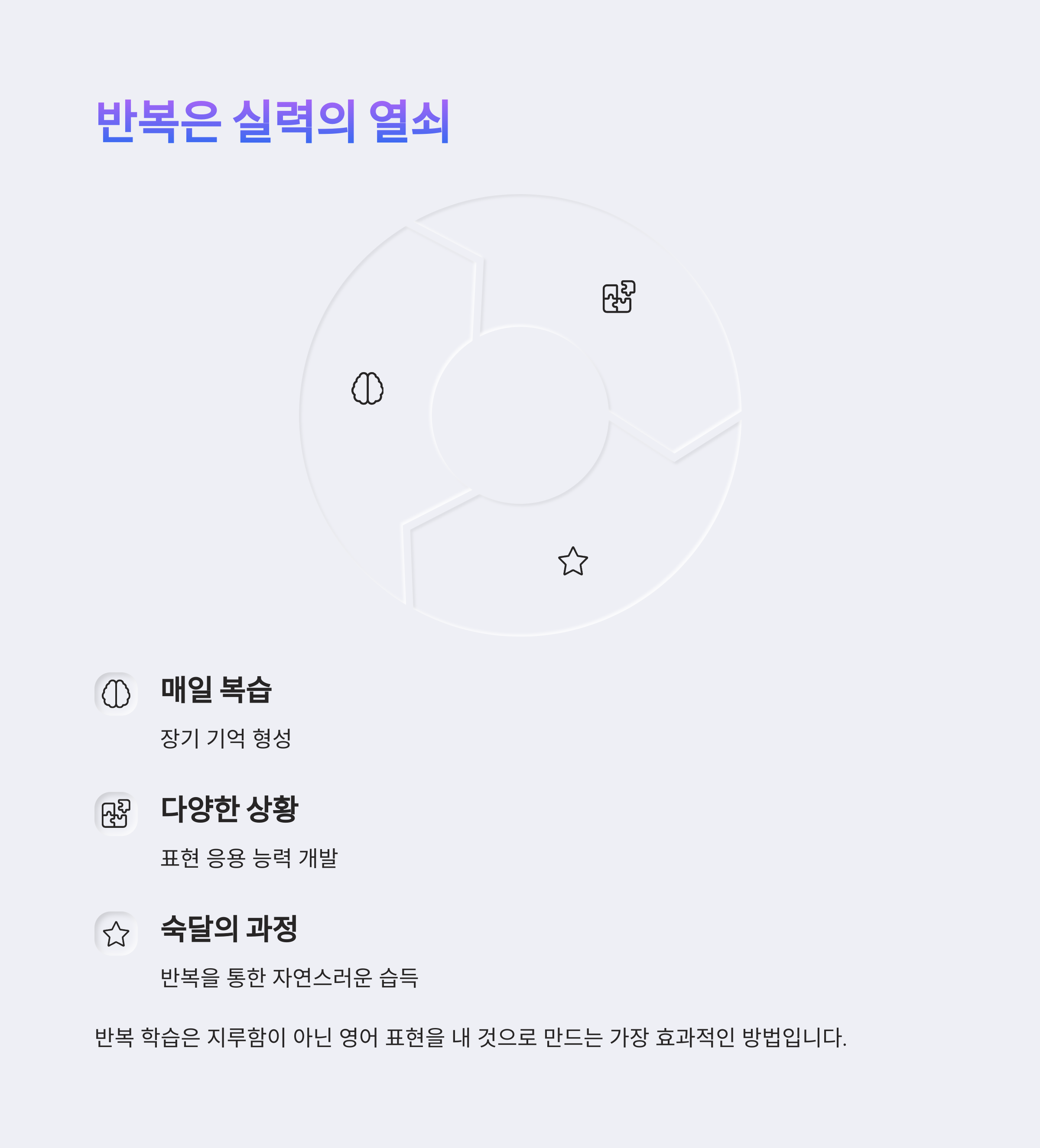| 습관의 힘 | 매일 반복하며 언어에 대한 감각을 자연스럽게 형성 |
