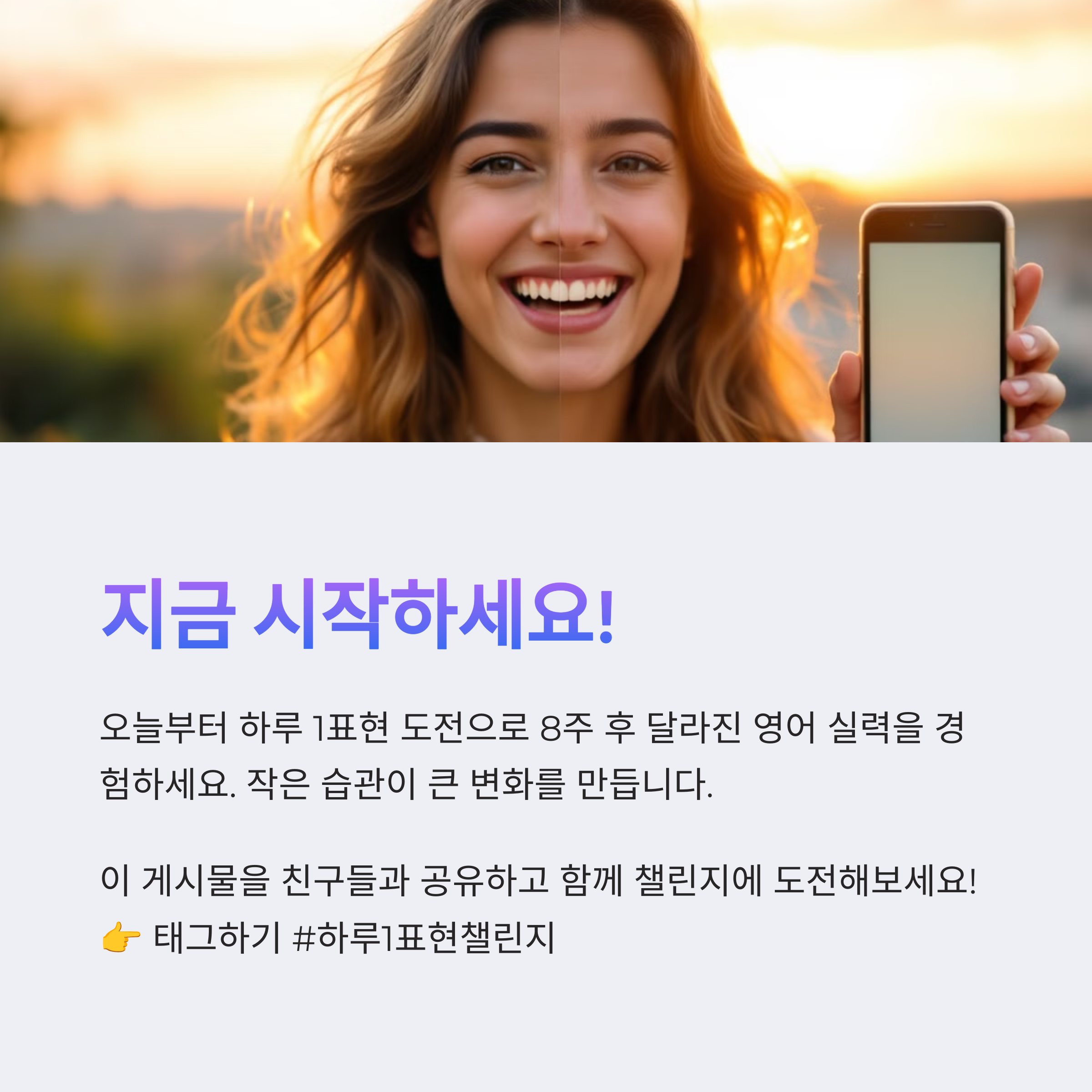 영어 공부는 긴 여정이지만, 그 여정을 지치지 않고 계속 나아가게 하는 원동력은 ‘작은 성공 경험’입니다. 하루 1표현 챌린지는 작지만 강력한 성공 경험을 매일 제공하며, 영어 학습에 대한 자신감과 흥미를 북돋아줍니다. 무리한 목표보다는 실행 가능한 작은 습관이야말로 진짜 실력을 키우는 가장 좋은 방법입니다. 오늘부터라도 시작해보세요. 내일의 나는 분명히 오늘보다 영어에 더 익숙해져 있을 것입니다.