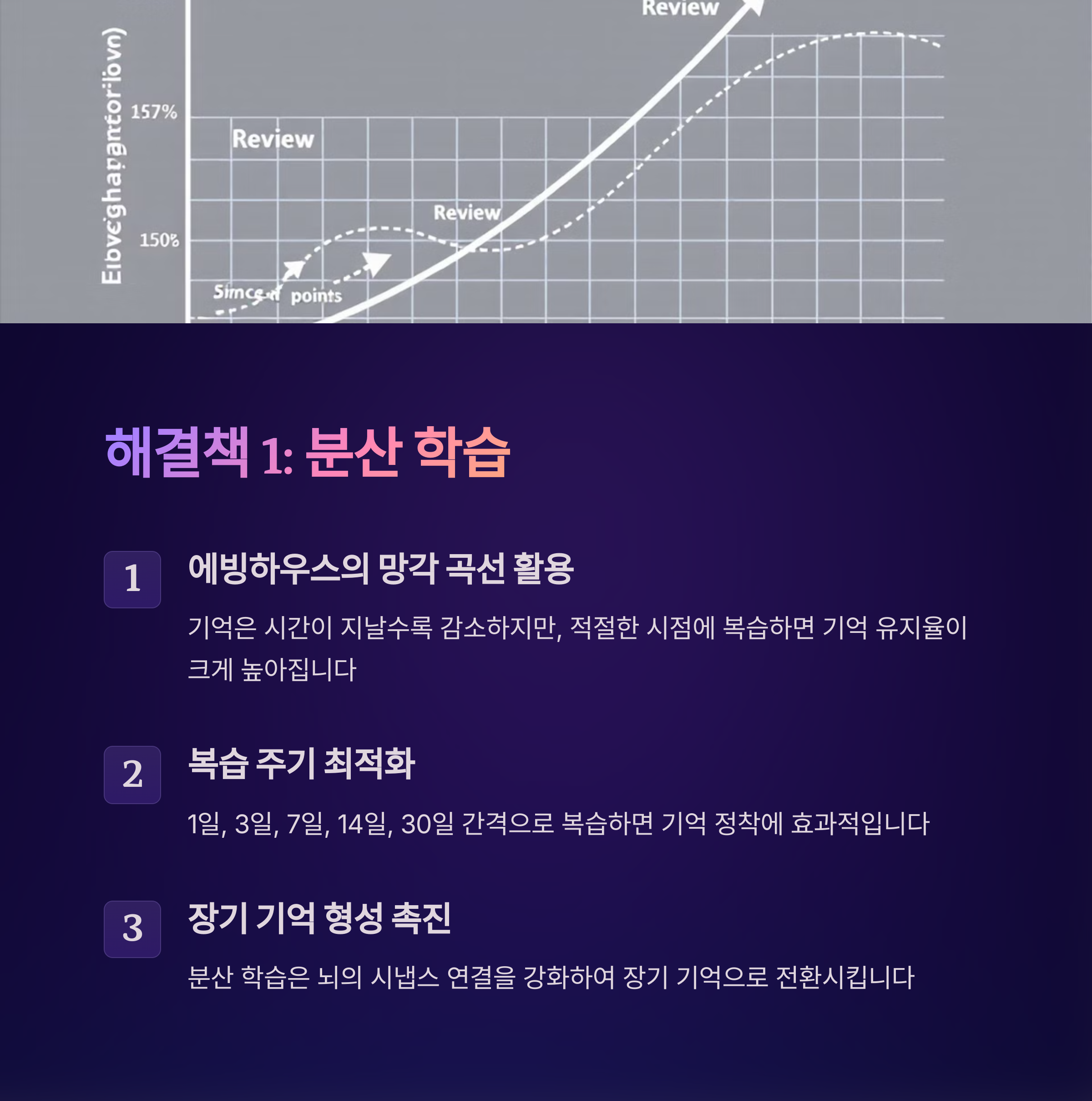 스페이싱 효과(분산 학습 효과)는 기억 유지에 매우 탁월하다는 연구 결과가 다수 있으며, 실제 적용도 쉽습니다.