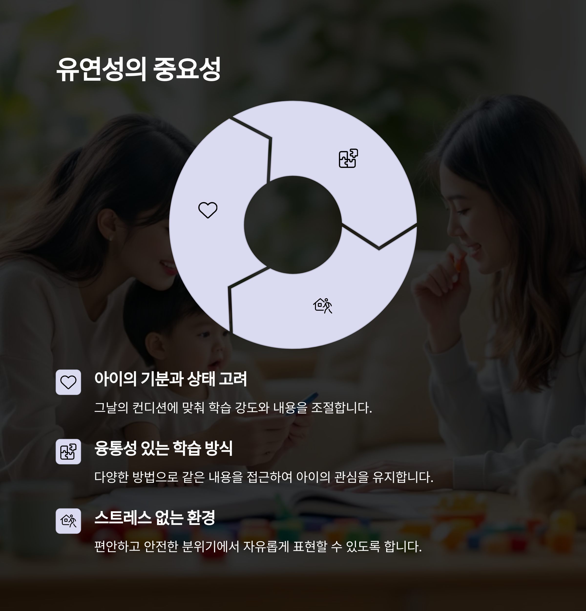 루틴 구성 기준 아이의 집중력과 흥미를 반영해 유연하게 구성합니다.