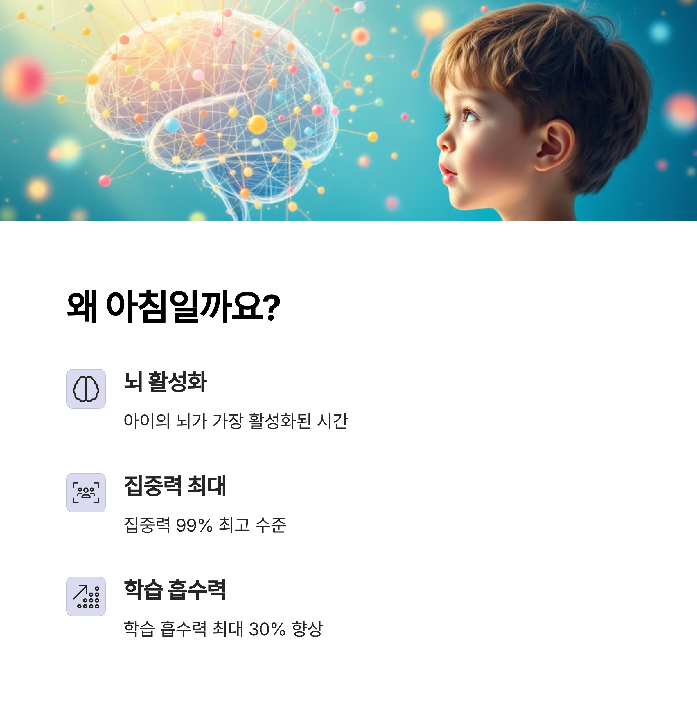 영어는 하루아침에 실력이 느는 과목이 아닙니다. 그래서 더욱 매일의 루틴이 중요한 이유이기도 하죠. 아침 시간의 짧은 투자로 아이의 언어 습관을 바꾸고, 장기적으로 학습에 대한 자신감과 주도성까지 키울 수 있습니다. 꼭 완벽한 루틴이 아니더라도, 매일 아이와 영어로 시작하는 시간이 있다면 그것이야말로 가장 효과적인 영어 교육이 될 것입니다.
